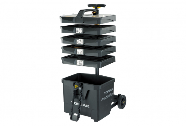 La boite Ă outils PrepStation se dĂ©place très facilement grâce Ă ses deux roues en 5″, et elle contient 6 compartiments.