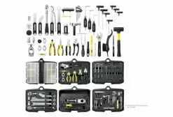 La boite Ă outils Topeak Prepstation Pro se dĂ©place facilement avec ses roues de 5 ”et sept compartiments Ă outils contenant 55 outils de vĂ©lo de qualitĂ© professionnelle (85 fonctions). L’empattement peut ĂŞtre facilement retirĂ© pour Ă©tendre la base de travail pour une meilleure stabilitĂ©. La poignĂ©e de levage Ă bouton-poussoir ouvre les plateaux Ă outils pour des rĂ©parations rapides et faciles.