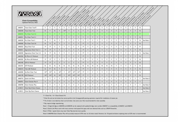 La troisième gĂ©nĂ©ration du Pro Chain Tool combine le design efficace et ergonomique du Shop Chain Tool avec les innovations de l’outil phare de Pedro’s, le Tutto Multi Chain Tool. Parmi les caractĂ©ristiques, citons le guide d’axe rĂ©tractable brevetĂ© (RPG) pour une fonctionnalitĂ© et une fiabilitĂ© supĂ©rieures, une mèche et un support pour l’installation des chaĂ®nes Campagnolo® 11, 12 et 13 vitesses, et une fente de cisaillement de l’axe de guidage intĂ©grĂ©e pour retirer rapidement les sections de guide des axes d’installation. Le pont remplaçable et rĂ©glable assure la compatibilitĂ© avec toutes les chaĂ®nes actuelles et futures.
