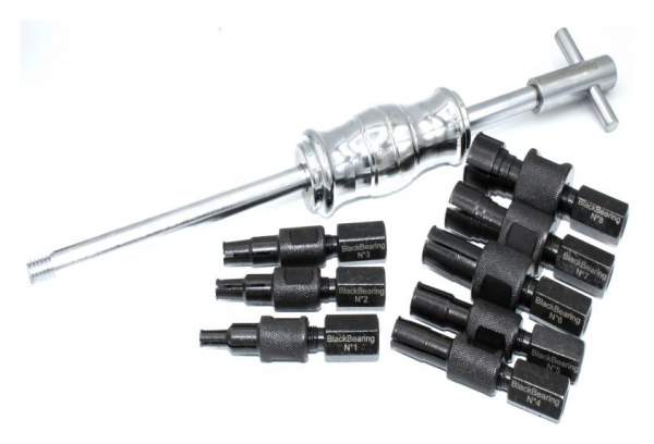 La malette de démontage de roulements à intertie contient 8 douilles de démontages pour les roulements de diamètre intérieur :  8 / 10 / 12 / 15 / 17 / 20 / 25 / 30 mm.