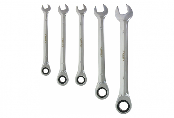 Clé à cliquet en acier chrome vanadium et finition polie et chromée.
