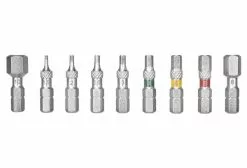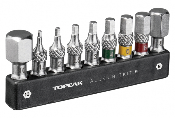 Un jeu complet de 9 embouts Allen pour la rĂ©paration et l’entretien des vĂ©los de route et de montagne. Conçu pour fonctionner avec tous les cliquets et clĂ©s dynamomĂ©triques Topeak ainsi qu’avec les autres marques de cliquets et d’embouts. La longueur gĂ©nĂ©reuse des embouts de 30 mm permet d’atteindre facilement les emplacements de boulons difficiles et le moletage empĂŞche les tâtonnements lors du changement d’embouts ou du retrait des embouts de l’organisateur.