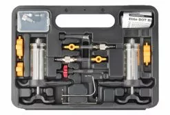 - Disponible sĂ©parĂ©ment pour les systèmes de fluide DOT et d’huile minĂ©rale, chaque kit contient des adaptateurs pour presque tous les systèmes de freins Ă disque hydrauliques sur le marchĂ©.
