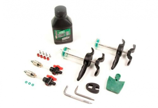 - Le kit comprend : 2 seringues premium, des raccords M4, des vannes quart de tour, un blocage de purge, une clé Torx, une clé Crowfoot, une huile minérale Sram Maxima DB8 120 ml.