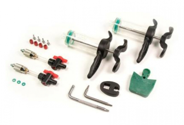 - Le kit comprend : 2 seringues premium, des raccords M4, des vannes quart de tour, un blocage de purge, une clé Torx, une clé Crowfoot