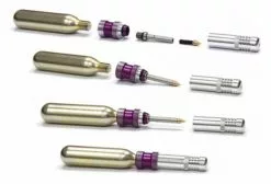 Le kit comprend deux cartouches de CO2 filetĂ©es de 16 grammes. Une cartouche permet de gonfler un pneu 26 x 4,6 Fat Tire de 0 Ă 14 psi et de gonfler un pneu de VTT sans chambre Ă air moyen Ă plus de 50 psi. L’outil fonctionne avec toutes les cartouches de CO2 filetĂ©es de 12 Ă 25 grammes.