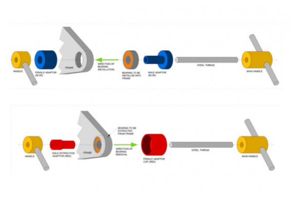 Ce kit adaptateur RRP est conçu pour ĂŞtre utilisĂ© exclusivement avec l’outil presse / extracteur de roulement RRP.