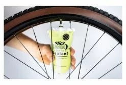 Légèrement épais, le Slicy Banana Smoothy tapisse en permanence l’intérieur du pneu et colmate les trous jusqu’à  6mm en une fraction de seconde. Fini les odeurs désagréables des préventifs à base d’ammoniaque. Le Slicy Banana Smoothy sent bon la banane ! Monter une roue en tubeless devient (presque) un plaisir.