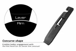 Le bord concave s’adapte parfaitement Ă la jante, permettant ainsi un meilleur engagement avec la tringle du pneu et un retrait plus facile du pneu, tandis que le bord fin glisse facilement sous la tringle du pneu, particulièrement pratique lorsqu’il y a un espace restreint entre la tringle du pneu et la jante.