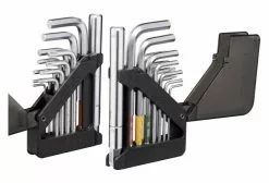Un jeu de clĂ©s Allen Ă 15 fonctions unique et un jeu de clĂ©s Torx rangĂ©s dans un organisateur pliable innovant qui est assez petit pour tenir dans une poche de maillot ou un sac de selle. Le bras d’extension inclus ajoute un effet de levier sur les outils hexagonaux de 5/6/8 mm en cas de besoin.