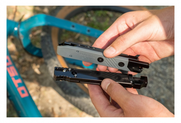 Le multi-outil Wolf Tooth 8-Bit Tire Lever + Rim Dent Remover est conçu pour fonctionner seul ou pour ĂŞtre groupĂ© avec d’autres multi-outils du système 8-Bit de chez Wolf Tooth. Les trois multi-outils s’emboĂ®tent les uns dans les autres grâce Ă des aimants et Ă un usinage astucieux. Ainsi, le multi-outil 8-Bit Tire Lever + Rim Dent Remover s’associe Ă l’un ou l’autre ou aux deux autres multi-outils du système 8-Bit (autres outils 8-Bit vendus sĂ©parĂ©ment). Ils ont Ă©tĂ© conçus pour rĂ©soudre la plupart des problèmes qu’il est possible de rencontrer sur les sentiers.