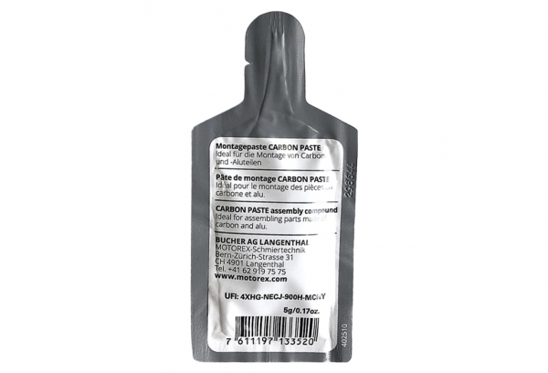 Attention : les pièces en carbone peuvent être endommagées par un serrage trop fort. Motorex Carbon Paste augmente les frottements de sorte que le serrage des pièces doit être bien moins fort.