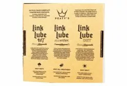 Le pack de lubrifiant Peaty’s LinkLube All Season contient 60 ml de LinkLube Wet, 60 ml de LinkLube Dry et 60 ml de LinkLube All Weather.
