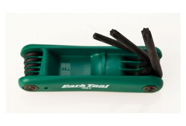 Le TWS-2 contient sur un même outil pliant et pratique les clés avec tête en étoile nécessaire pour des composants tels que les plaquettes de freins, les pédales et les plateaux.