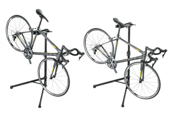 - Attache au tube de selle ou Ă la tige de selle avec la roue avant au sol