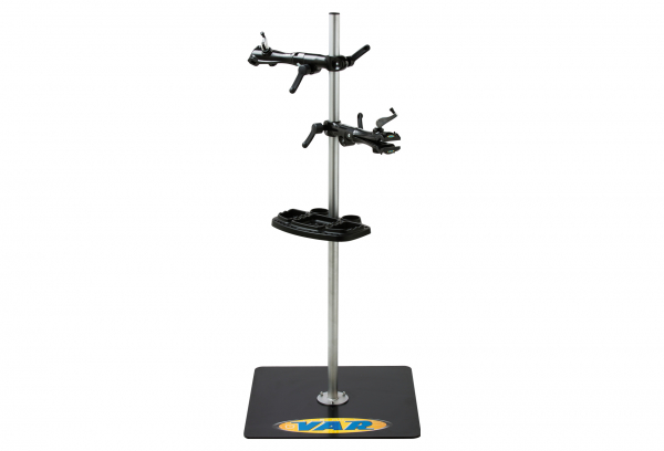 Le pied d’atelier VARÂ Professionnel Double comprend deux pinces ajustables afin de supporter deux fois Ă la fois.