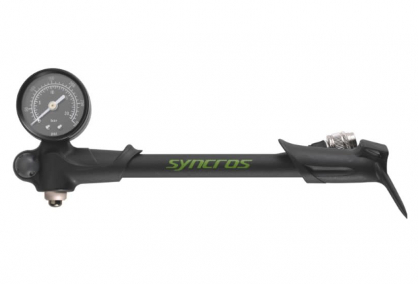 Pompe haute pression pour suspensions Syncros SMP-07. Baril en aluminium, tige de piston en acier, poignĂ©e ergonomique, tĂŞte vissĂ©e Schrader uniquement, bouton de purge d’air.