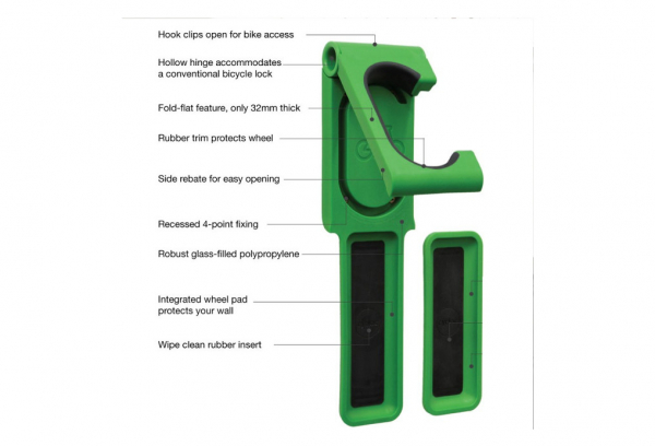 Le support pour vĂ©lo mural Cycloc Endo permet d’accrocher n’importe quel type de vĂ©lo. La platine basse permet de ne pas salir le mur avec la roue.