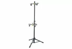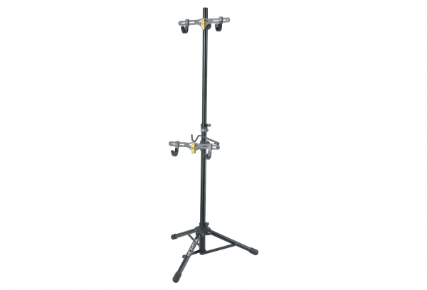 Le support Topeak TwoUp TuneUp est un système de rangement pour plusieurs vĂ©los qui est assez solide pour servir de support de travail portable. Construit en tubes d’aluminium, le pilier central s’Ă©tend Ă plus de deux mètres de hauteur, tandis que les pieds tripodes fournissent une base stable. LivrĂ© d’origine pour stocker deux vĂ©los, il est capable de stocker jusqu’Ă quatre vĂ©los au maximum, grâce Ă des supports de vĂ©los en option.