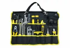 Vous avez hâte que vos outils soient organisĂ©s, protĂ©gĂ©s et prĂŞts Ă l’action ? Alors, rĂ©galez-vous avec le Pedro’s Burrito Tool Roll II. Cette trousse Ă outils de qualitĂ© professionnelle prĂ©sente une grande surface (60 x 40 cm) avec des poches renforcĂ©es de diffĂ©rentes tailles, des poches Ă©lastiques polyvalentes, des poches Ă©lastiques pour embouts hexagonaux et une grande poche en filet Ă fermeture Éclair pour ranger en toute sĂ©curitĂ© les petites pièces ou les objets personnels. Elle dispose Ă©galement d’un système unique de monture en X qui transforme le rouleau flexible en une palette d’outils rigide. DĂ©roulez la Burrito Tool Roll II, installez les tringles de la monture, suspendez-la Ă un support de rĂ©paration ou Ă une valise Ă outils, et mettez-vous au travail. Lorsqu’il est temps de remballer, l’extĂ©rieur impermĂ©able et le rabat interne protègent vos outils et les sangles velcro permettent de tout garder en ordre.
