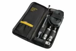 Un kit complet de rĂ©paration de pneus sans chambre Ă air / de gonflage au CO2 pour les amateurs de route et de tourisme, emballĂ© dans une Ă©lĂ©gante mallette de rangement montĂ©e sous le tube supĂ©rieur. L’organisateur interne maintient l’Ă©quipement proprement et solidement en place.